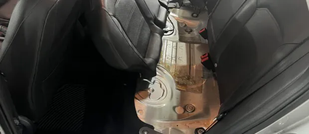 - Откиньте правую спинку заднего сиденья для доступа к люку над топливным баком.