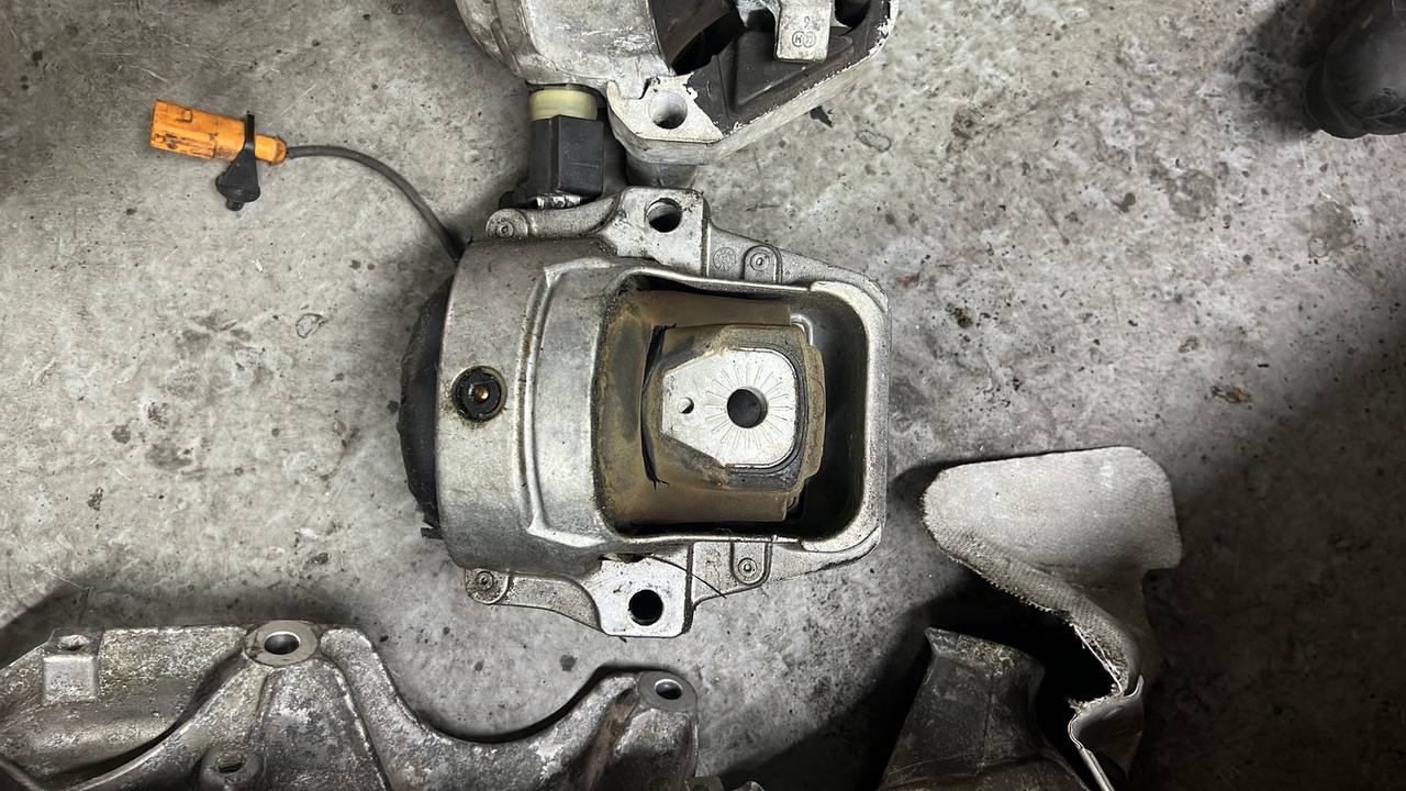 В ходе диагностики ходовой части нашим специалистом было обнаружено, что подушка двигателя очень сильно просажена и имеет некоторые дефекты. Чтобы проверить более подробно проблему – нужно было демонтировать подушку. Проговорив с клиентом данный ряд работ мастера Mr. Driver демонтировали подушку, на которой были видны значительные трещины, что подтвердило нашу диагностику. Далее мы поменяли подушки двигателя и собрали все обратно. После окончания работы вибрация на Audi отсутствовала совсем. Клиент остался доволен результатом.