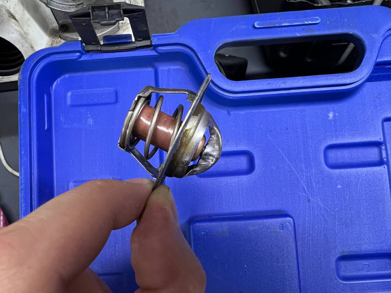 • Снимите необходимые детали для доступа к термостату (обычно расположенному у головки блока цилиндров).