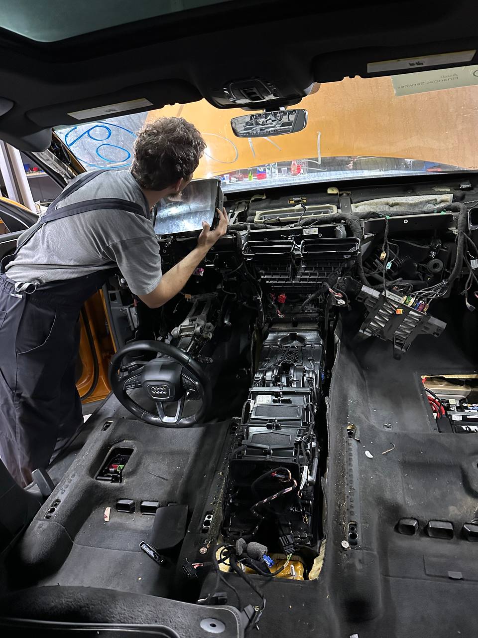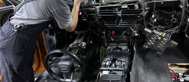 На Audi Q7/Q8 (MLB Evo) замена радиатора печки – это полноценная разборка передней части салона.