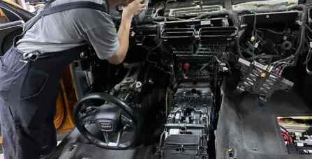 Снятие передней панели для смены радиатора печи Audi Q8 3.0 TFSI