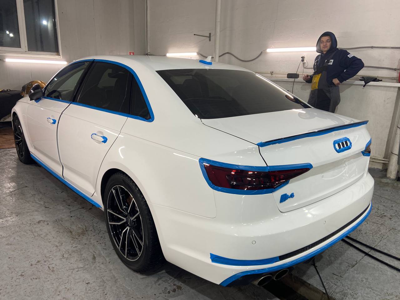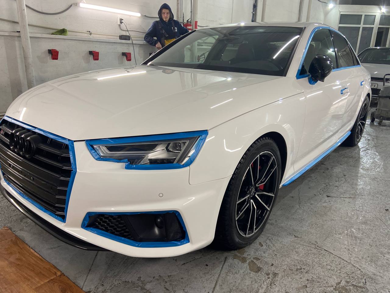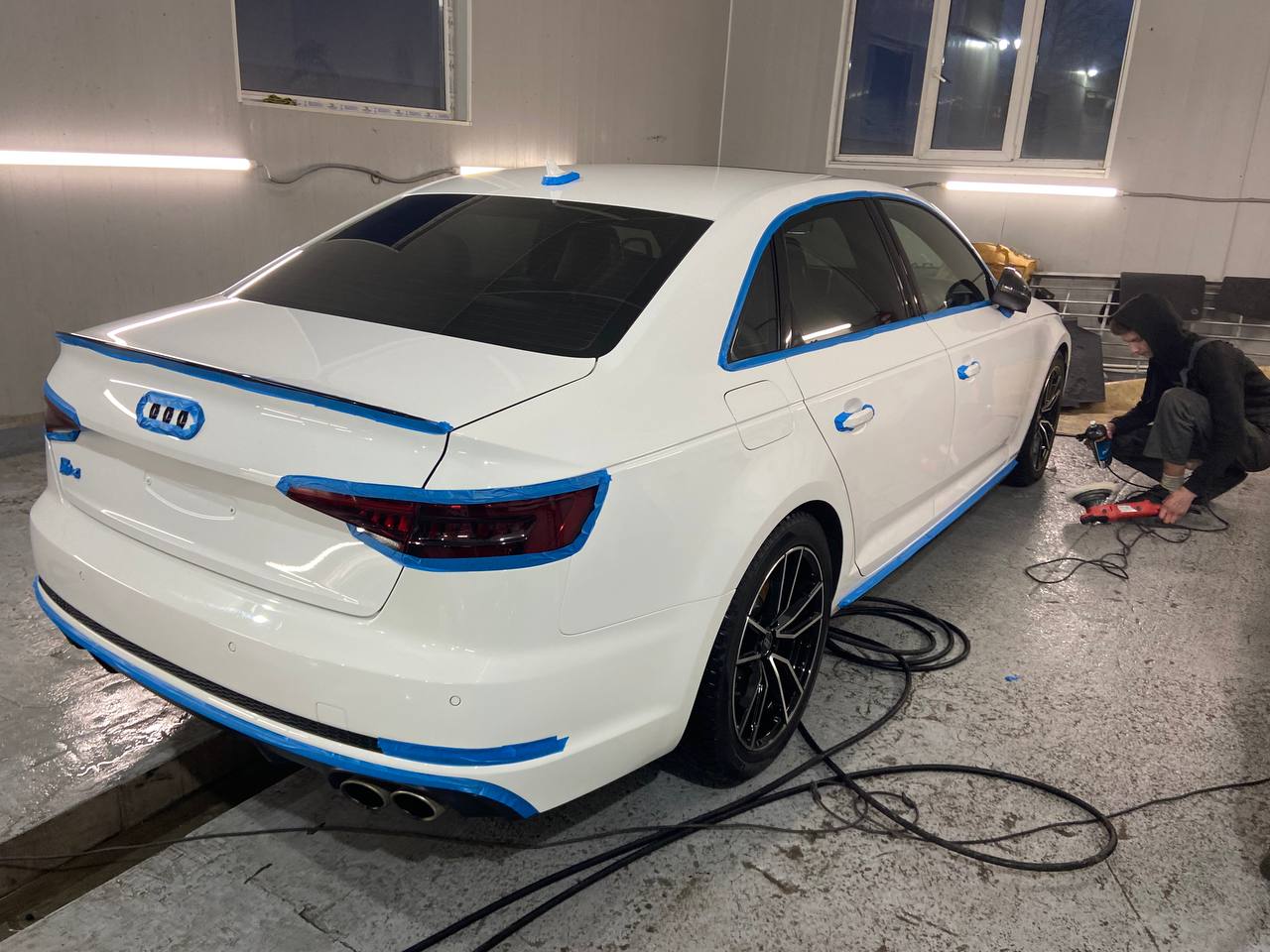 До нас завітала Audi A4 B9 2019 року випуску з серйозними проблемами лакофарбового покриття. Автомобіль часто мився на тунельних автомийках, щіткових системах та мийках самообслуговування. Це призвело до того, що кузов був повністю вкритий подряпинами та дрібними пошкодженнями.